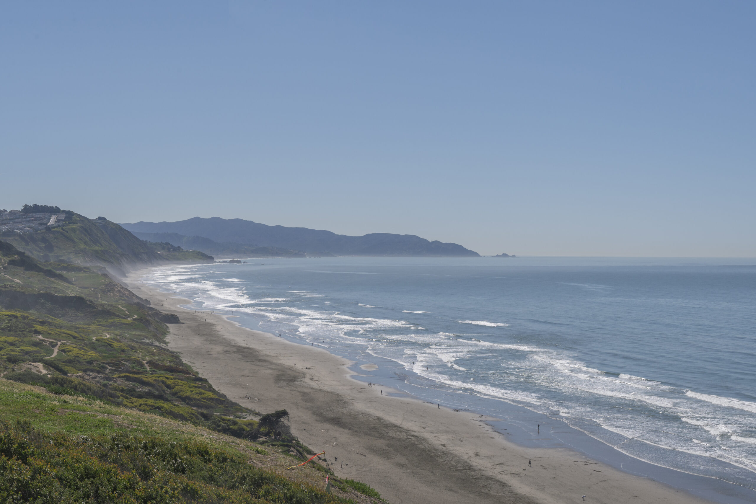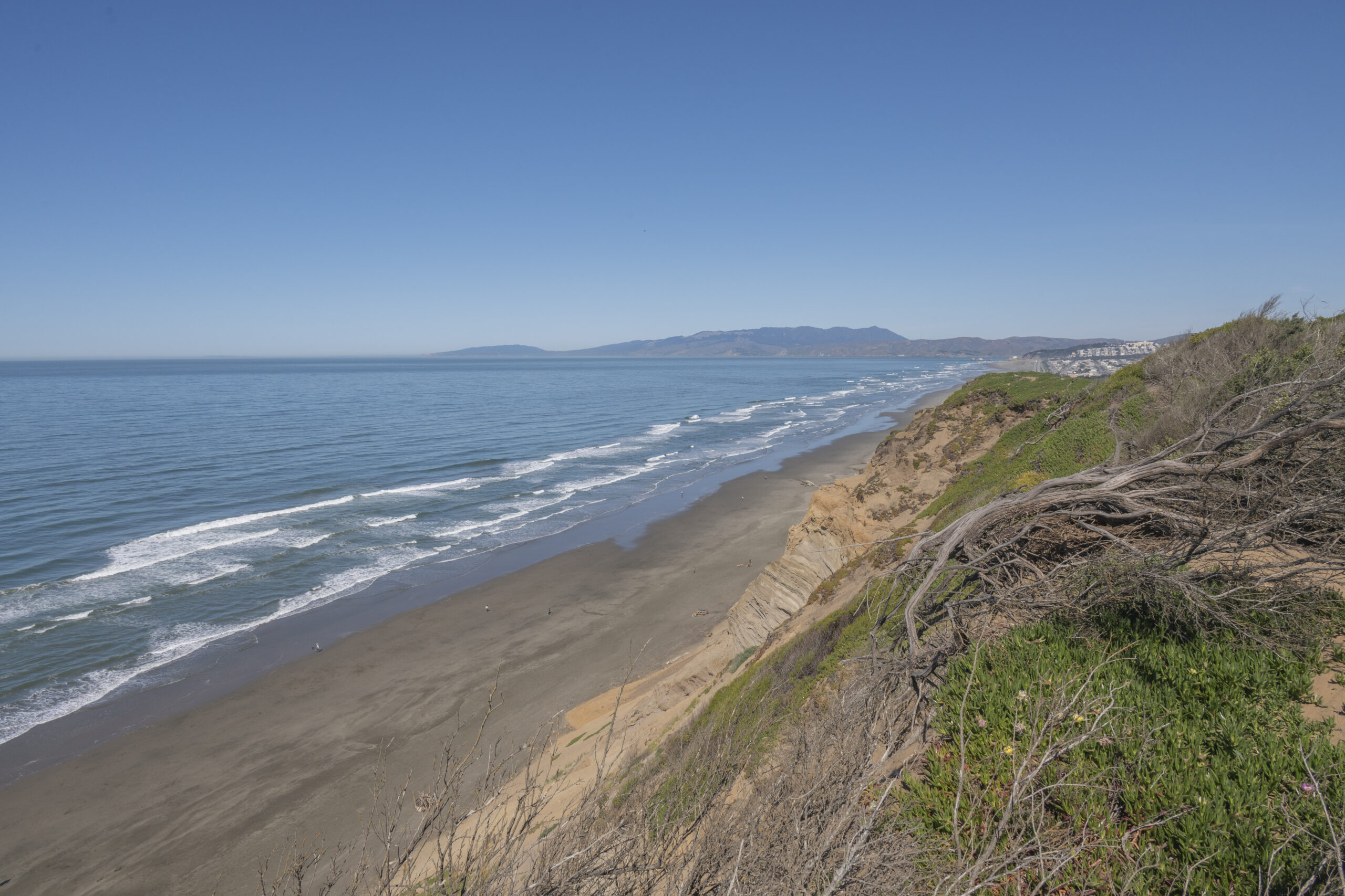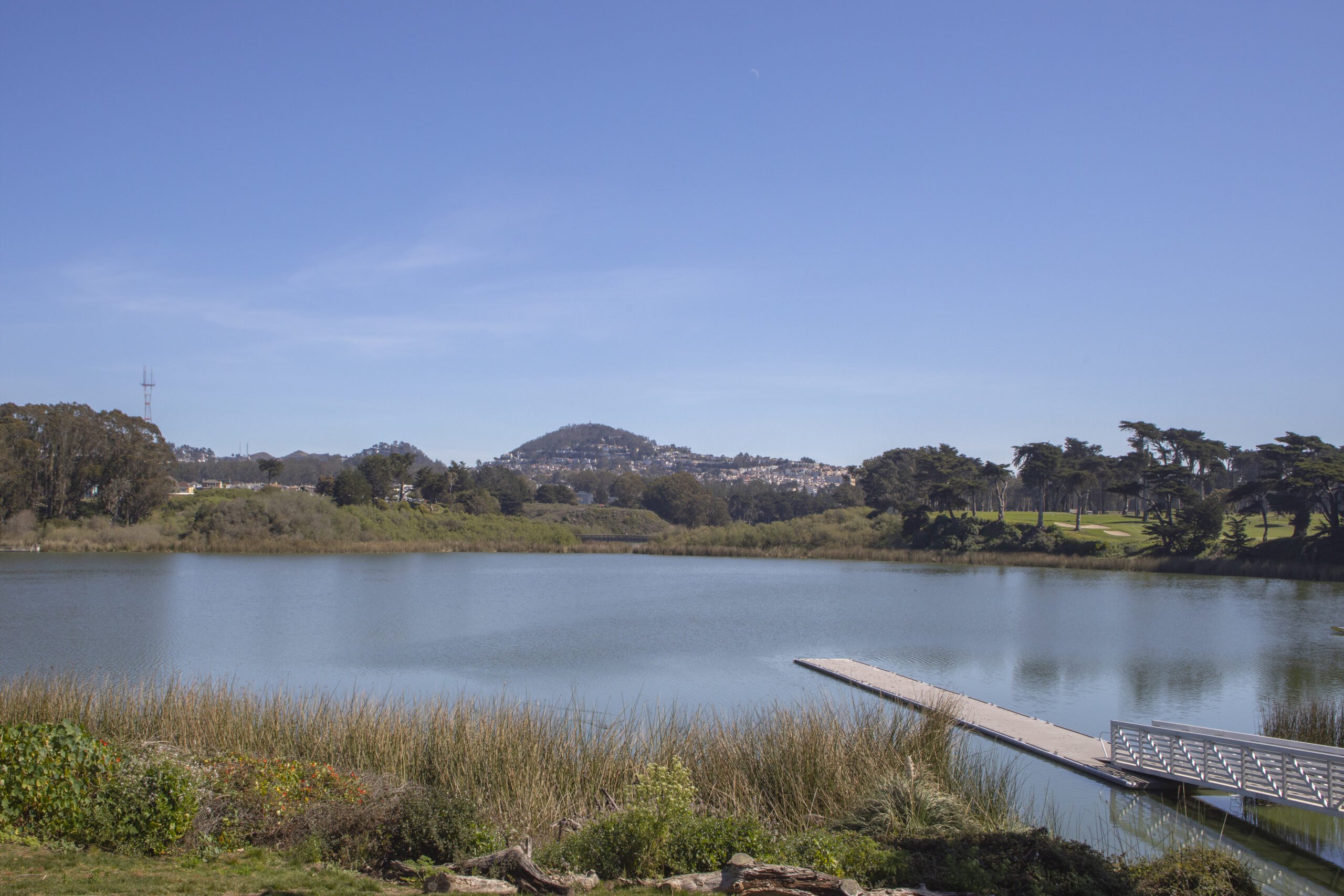Tastefully updated two-bedroom, two-bath top floor flat in a coveted corner location coupled with copious amounts of natural light, contemporary finishes, and located in a peaceful and secure setting by the San Francisco golf club! The flat opens to dramatic 15 foot vaulted and open beaming ceilings with natural wood accents over the open living/dining area with fireplace and direct access to the deeded outdoor space. There is a large, remodeled kitchen with in-unit laundry, two updated bathrooms, and two spacious bedrooms all on the same level. The primary bedroom also benefits from vaulted ceilings and a walk-in closet. Do not miss this special home with deeded parking, storage, elevator, 24-hour security, a well-managed HOA, swimming pool, recreation room, spa, tennis courts, and close to parks, playgrounds, golf courses, shopping, HWY 101/280 and more!