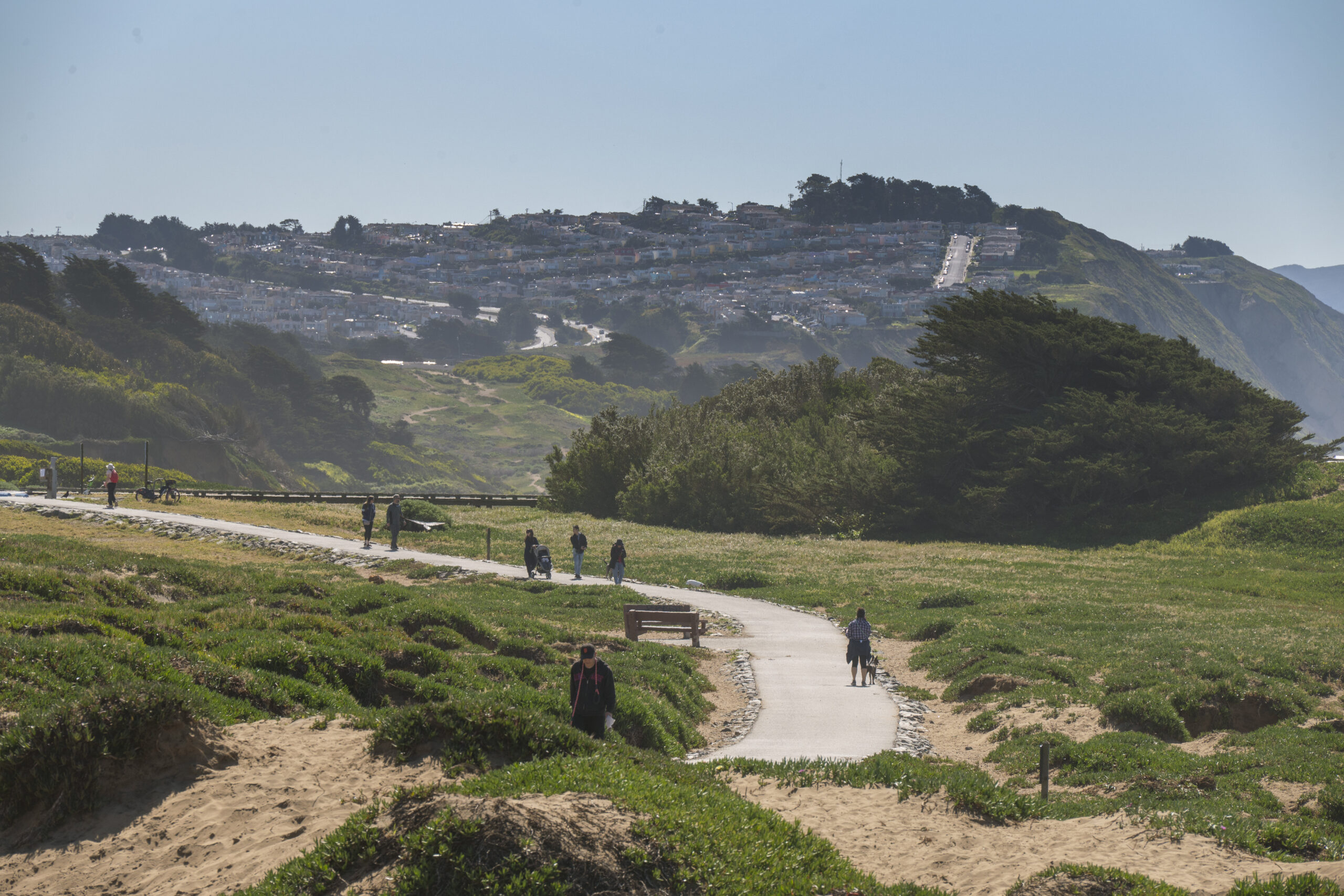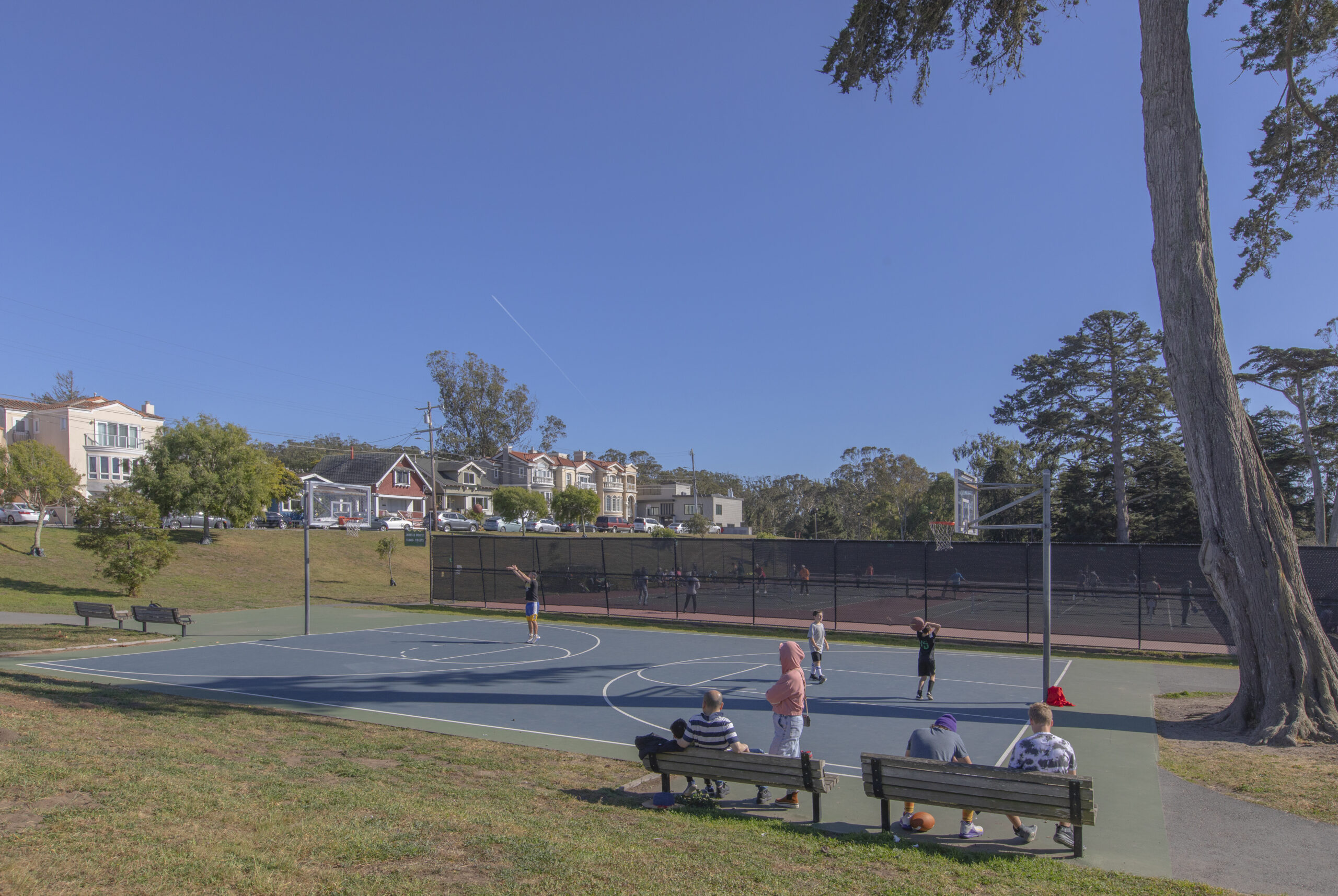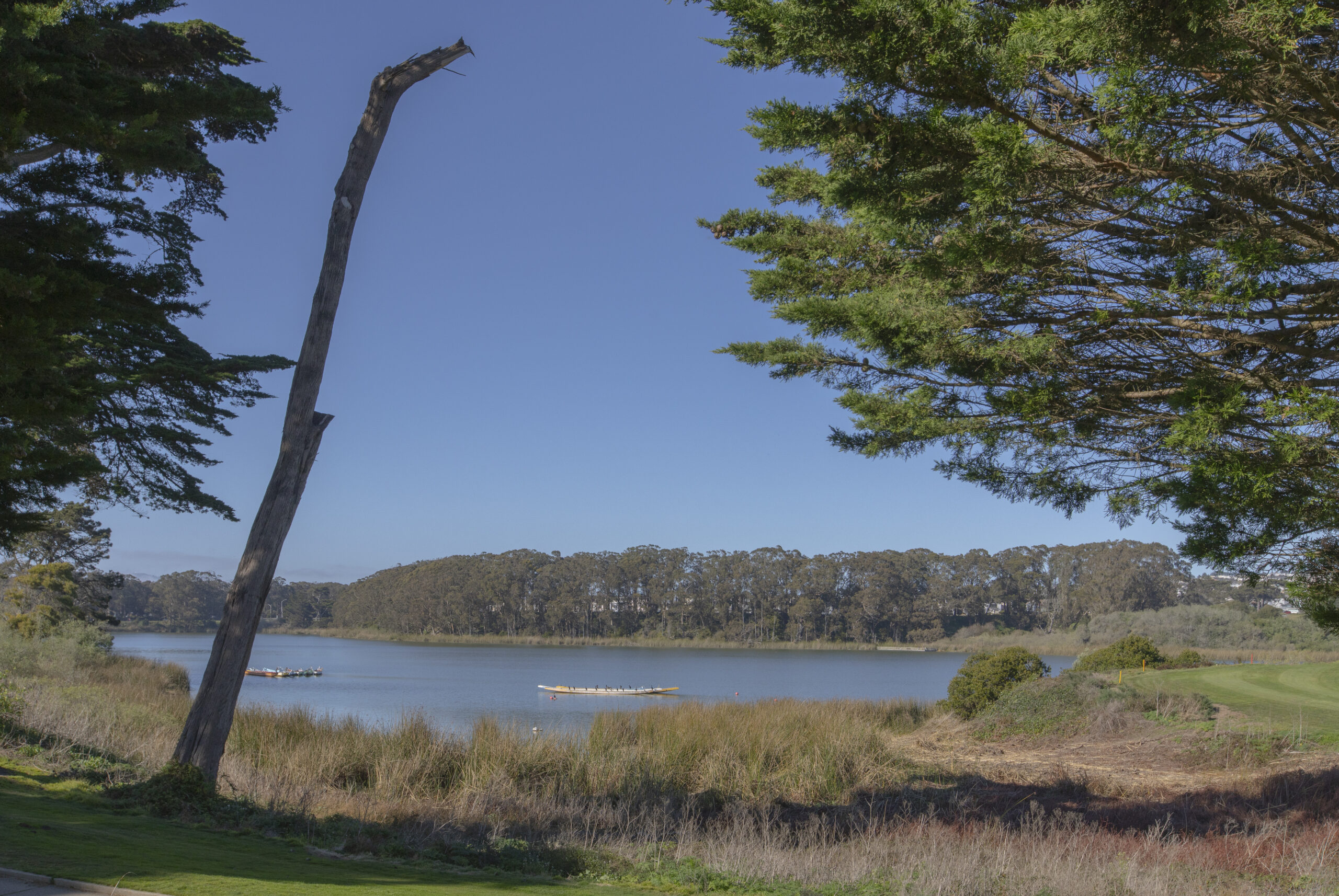 Tastefully updated two-bedroom, two-bath top floor flat in a coveted corner location coupled with copious amounts of natural light, contemporary finishes, and located in a peaceful and secure setting by the San Francisco golf club! The flat opens to dramatic 15 foot vaulted and open beaming ceilings with natural wood accents over the open living/dining area with fireplace and direct access to the deeded outdoor space. There is a large, remodeled kitchen with in-unit laundry, two updated bathrooms, and two spacious bedrooms all on the same level. The primary bedroom also benefits from vaulted ceilings and a walk-in closet. Do not miss this special home with deeded parking, storage, elevator, 24-hour security, a well-managed HOA, swimming pool, recreation room, spa, tennis courts, and close to parks, playgrounds, golf courses, shopping, HWY 101/280 and more!