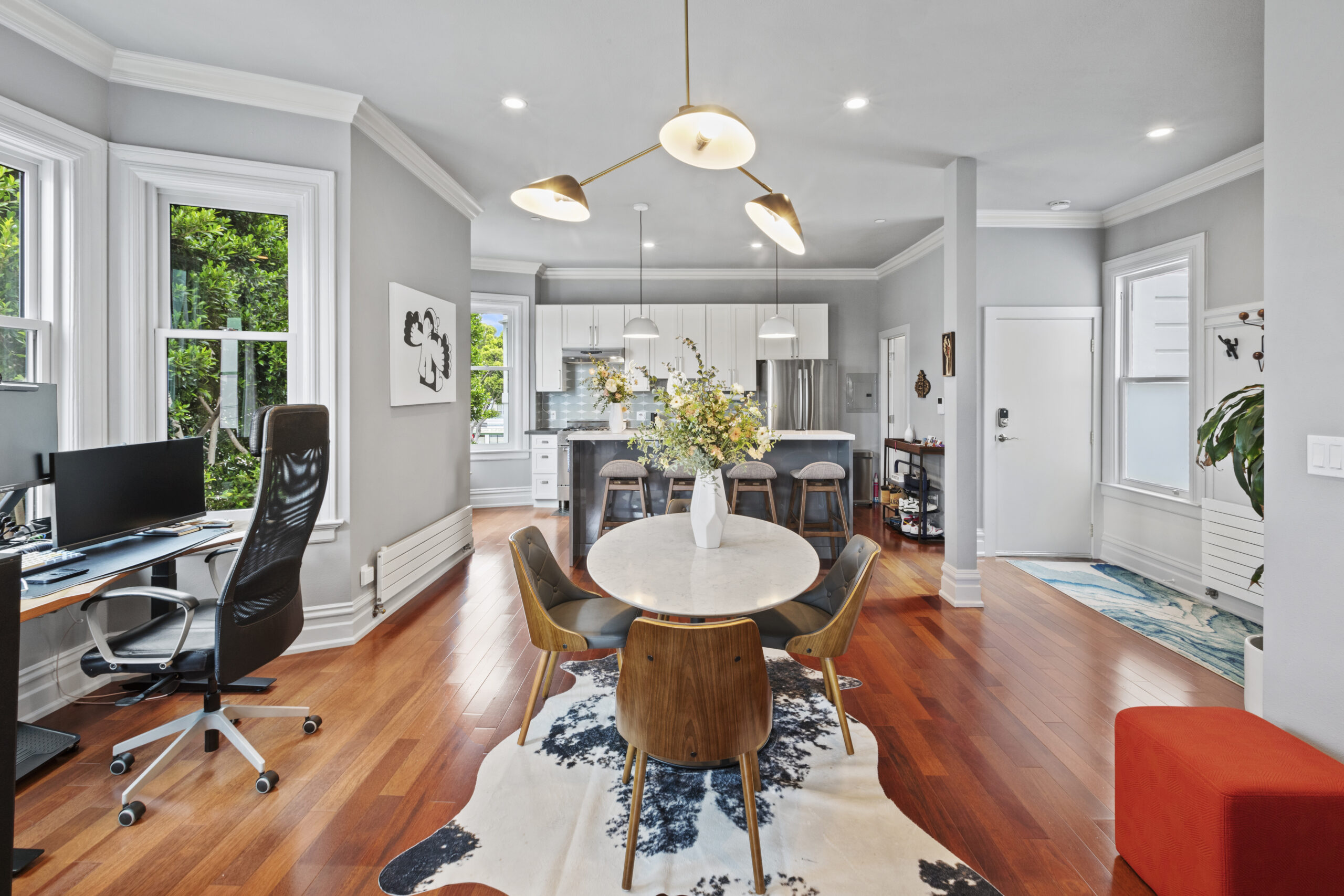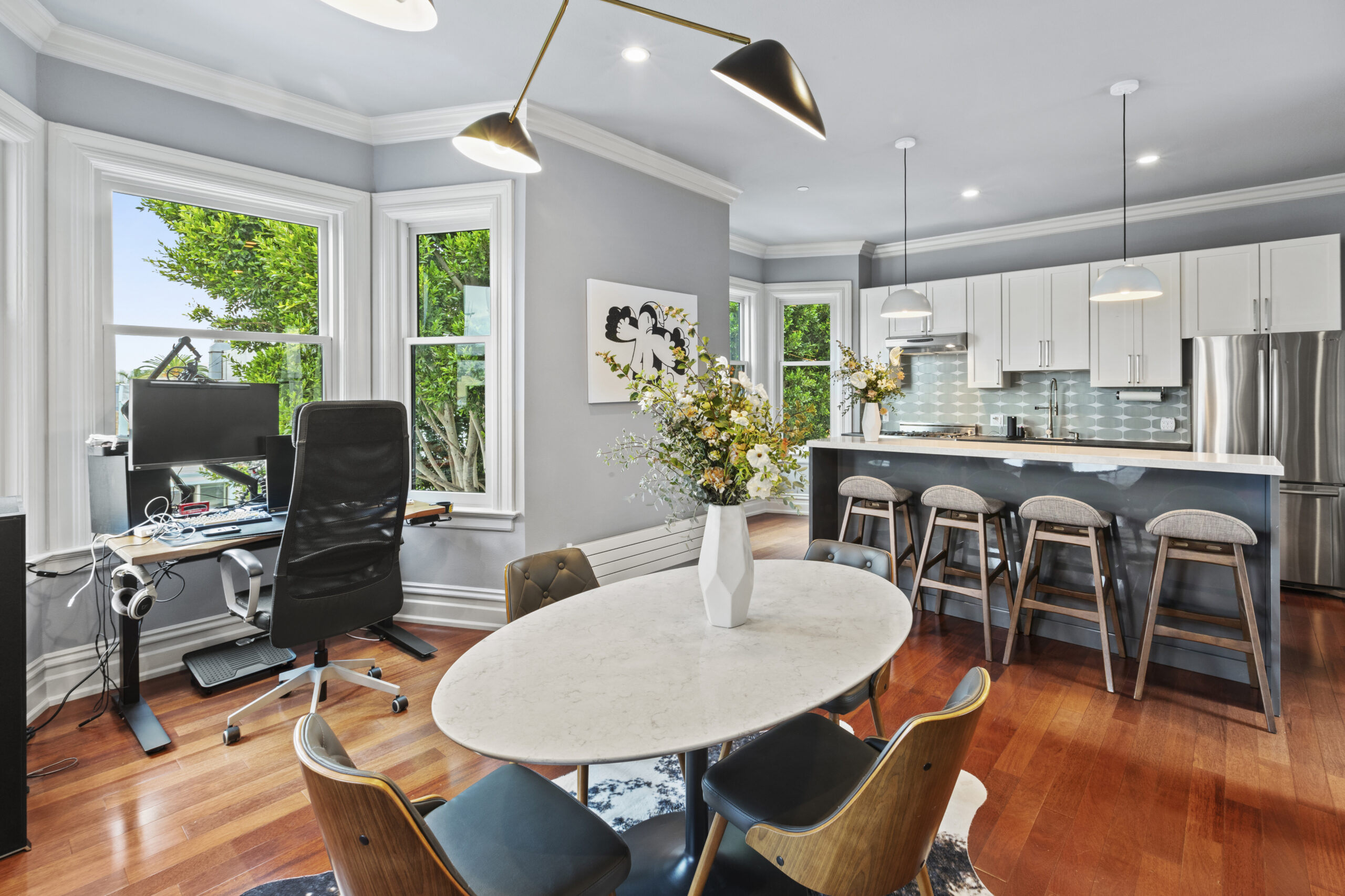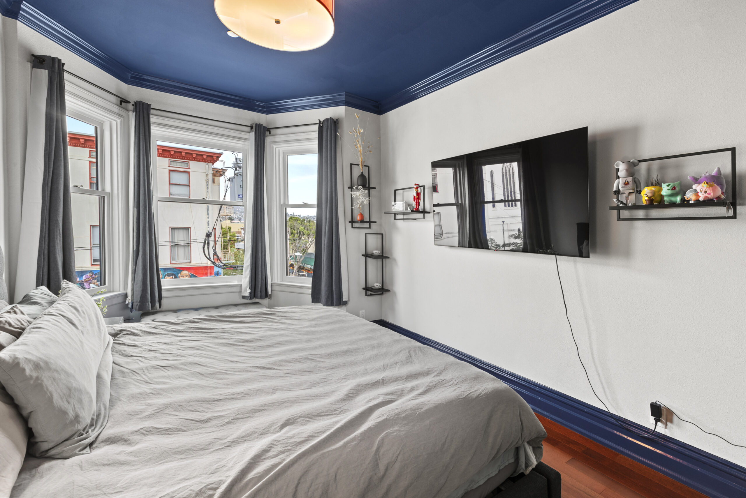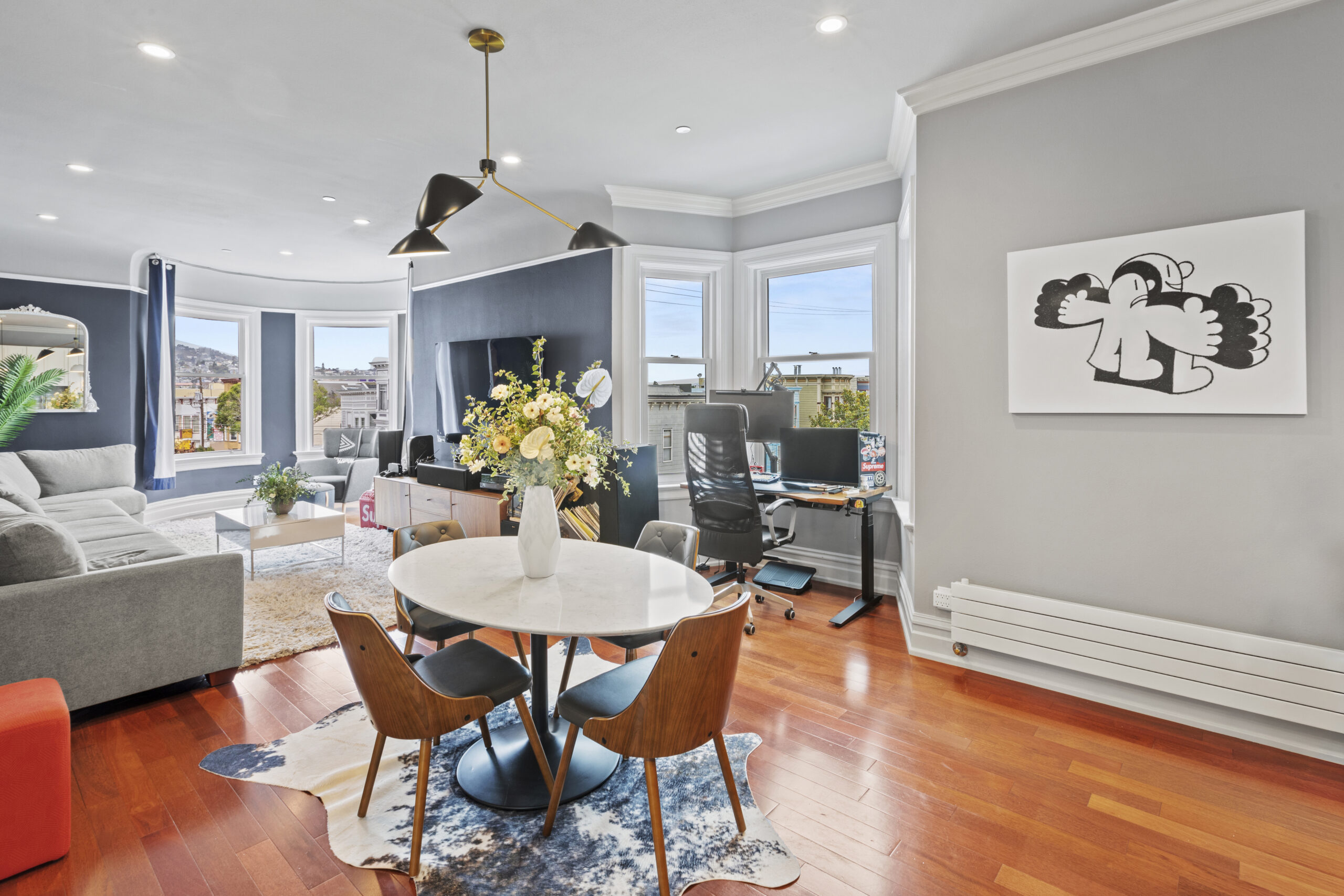 Nestled in the heart of the Mission, 2893-A 24th Street is a luminous top-floor corner residence overflowing with character. Sunlight floods through three sets of bay windows offering sweeping views of Twin Peaks and Sutro Towers. The open layout showcases a gourmet kitchen with Bertazzoni range, Bosch dishwasher, wine fridge, and island with breakfast bar. Entertain in a generous dining area, lounge in the elegant living room, or retreat to the bedroom, complete with custom office nook, skylight, and walk-in closet. Includes in-unit laundry and parking.