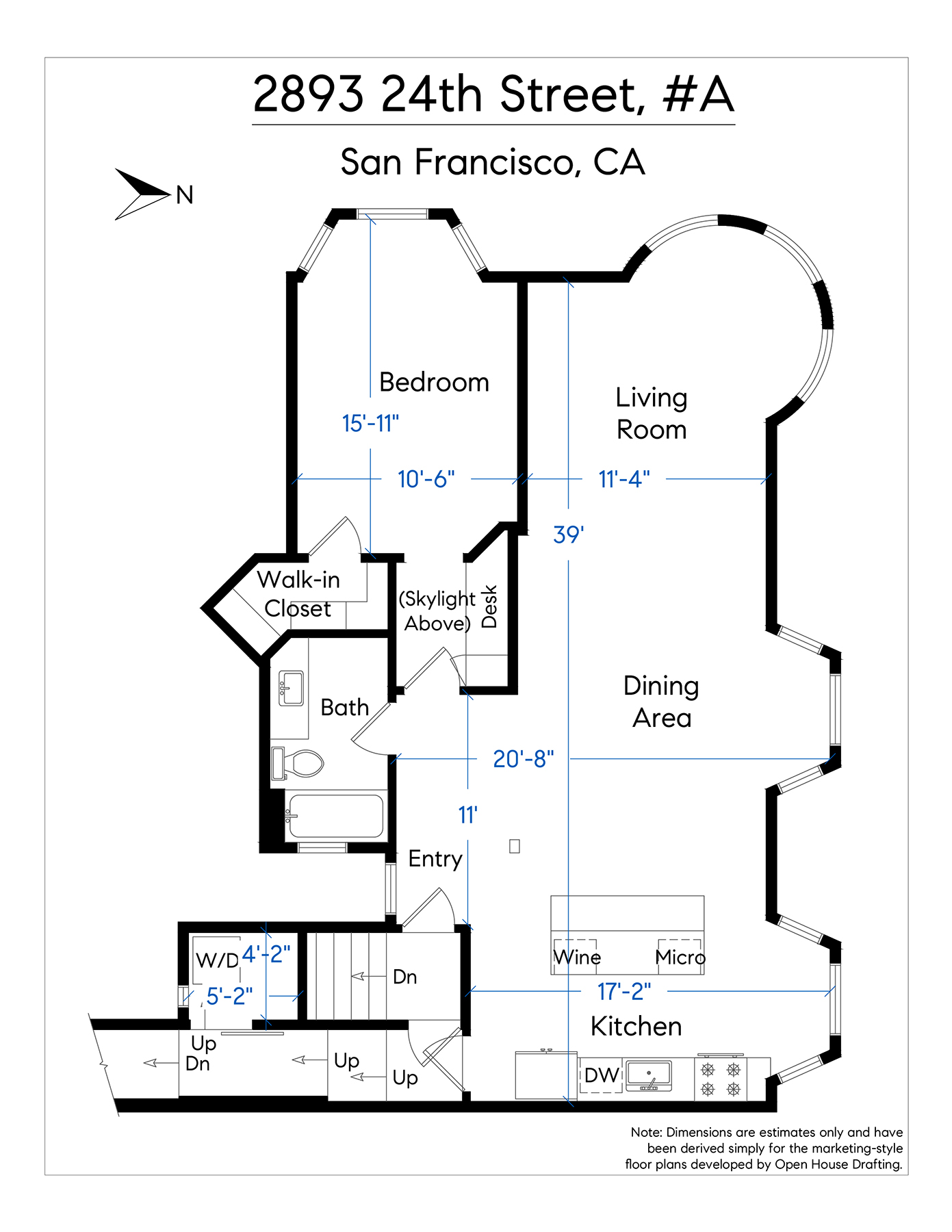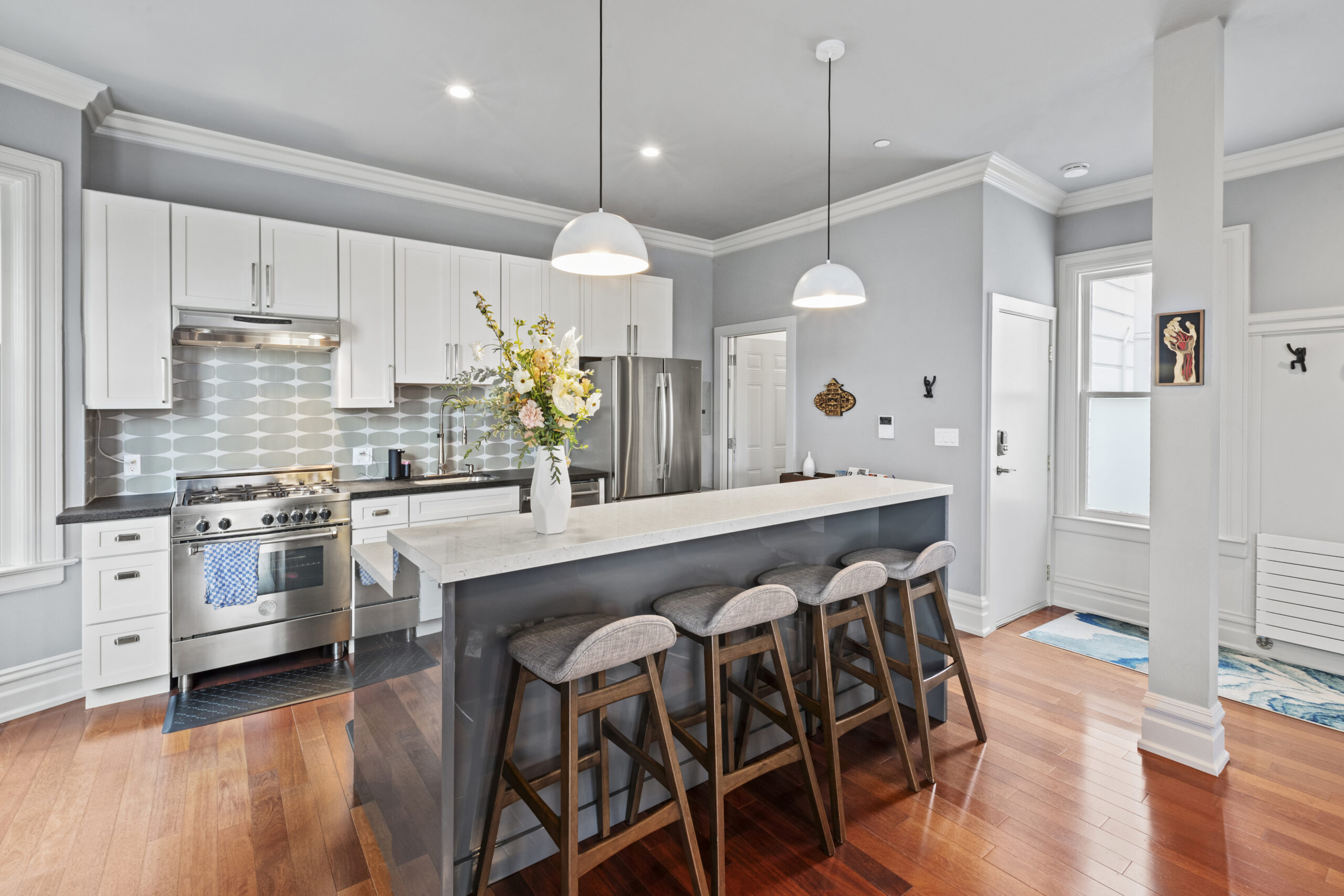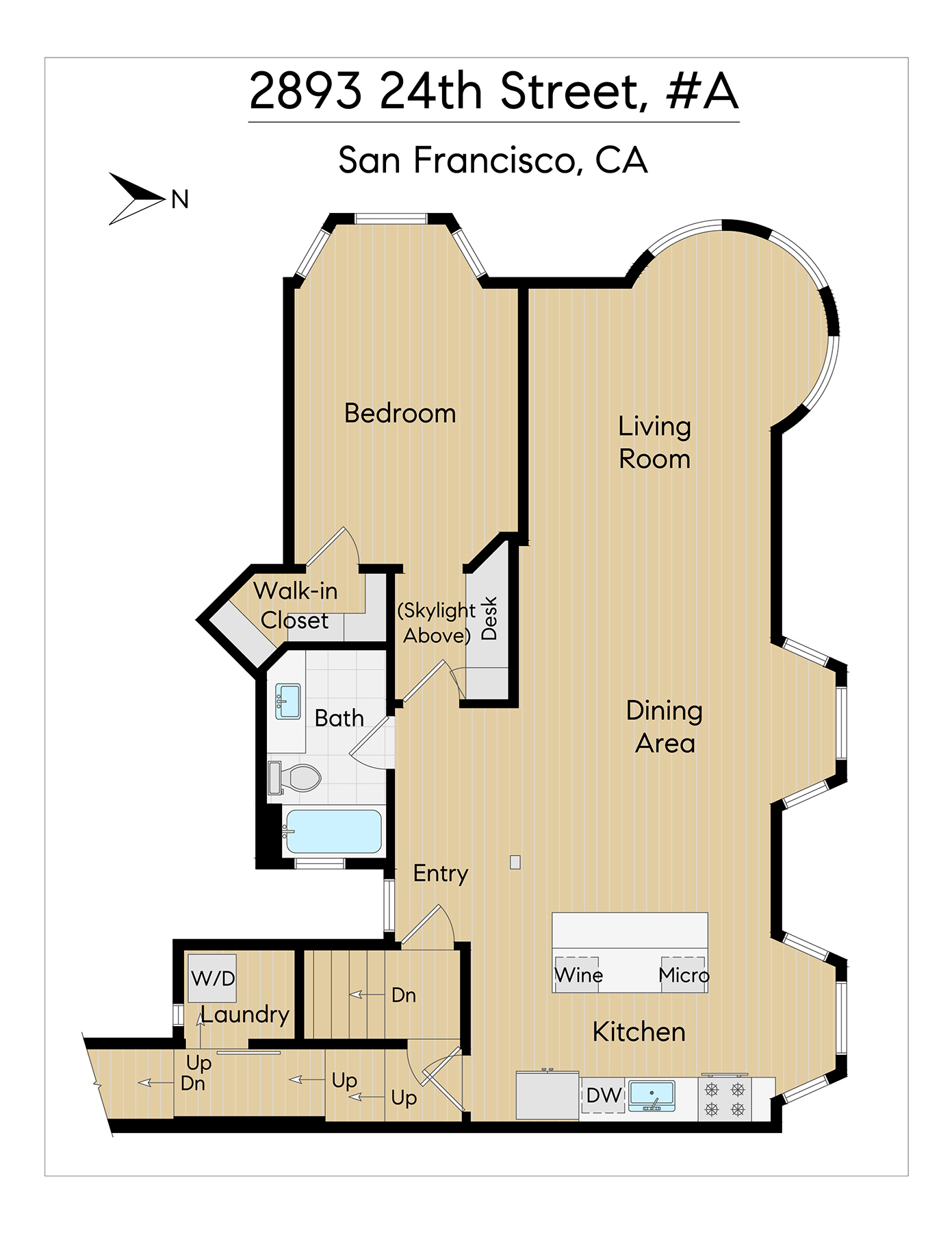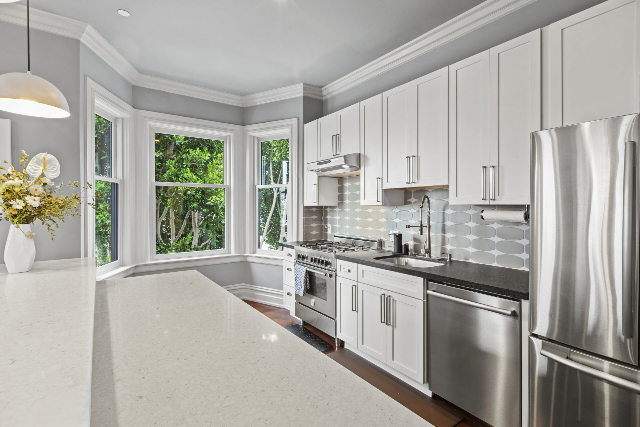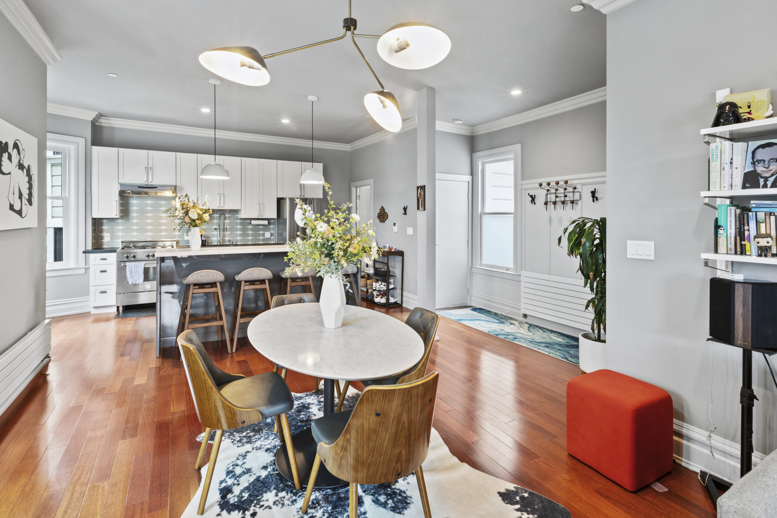 Nestled in the heart of the Mission, 2893-A 24th Street is a luminous top-floor corner residence overflowing with character. Sunlight floods through three sets of bay windows offering sweeping views of Twin Peaks and Sutro Towers. The open layout showcases a gourmet kitchen with Bertazzoni range, Bosch dishwasher, wine fridge, and island with breakfast bar. Entertain in a generous dining area, lounge in the elegant living room, or retreat to the bedroom, complete with custom office nook, skylight, and walk-in closet. Includes in-unit laundry and parking.
